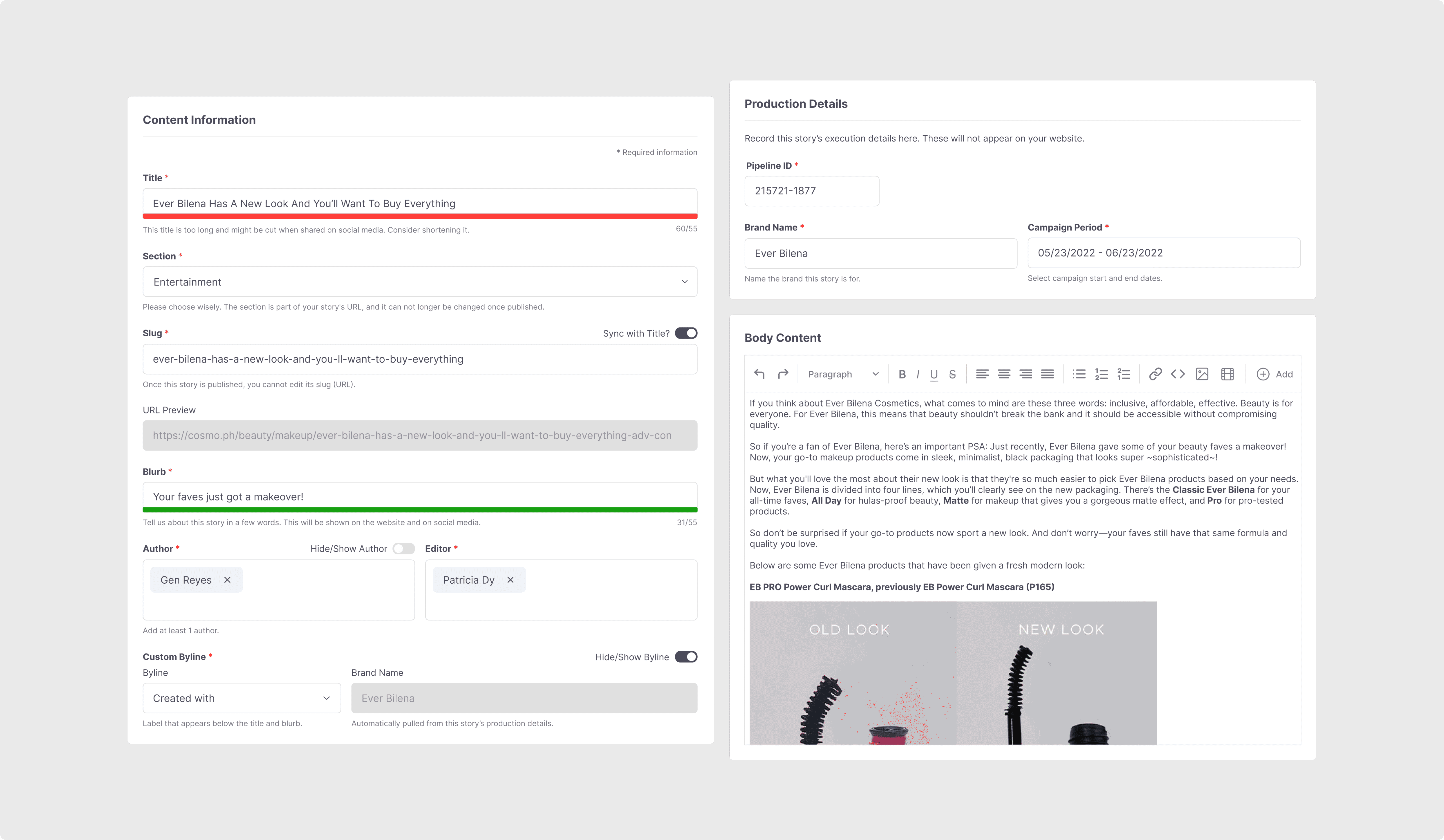 Our team avoided brand-specific customizations in favor of a consistent editor experience, ensuring that editors could move between brands without relearning the system.